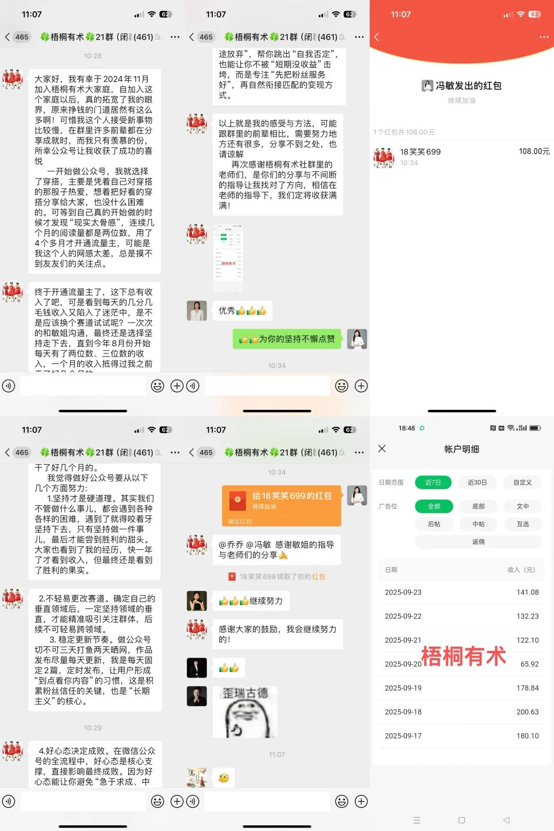 就像她自己说的,看到群里小伙伴出成绩,她也很心急,她平时也不怎么说话,一般是有不懂的问题会找我沟通,每次跟她说完账号问题,她都会默默记下,然后去优化。好不容易熬到4个月才开通流量主,收入只有可怜的几毛几分,换做别人早就放弃换赛道或者重新注销了。