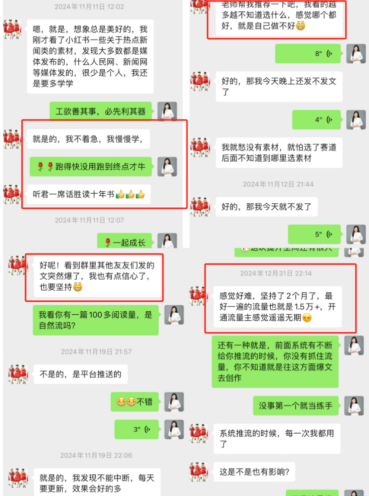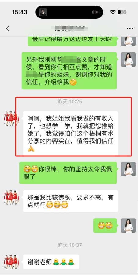 笑笑说,在群里,她觉得分享的内容都很有价值。还把她的姐妹介绍给我,跟我学习,我觉得她最应该感谢的是坚持不懈的自己。
