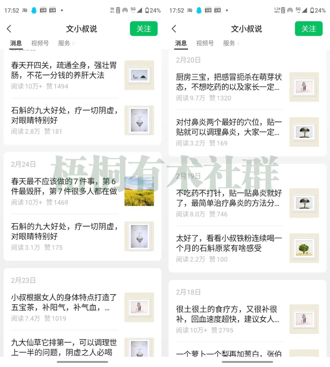 这个赛道前期可能稍微慢一点,但是到了后面,流量非常恐怖,因为养生赛道的用户基本都是中老年人,这部分人根本不懂网络,不懂自媒体,但凡你分享的,他都会认为很有道理,同时也会转发给自己的儿女、自己的“家和万事兴”群里、还会转发给“花开富贵、一生平安、天道酬勤”这些好友们,并且还会把你公众号上面的“干货”养生文章全部转发到朋友圈,给你带来无穷无尽的间接流量。